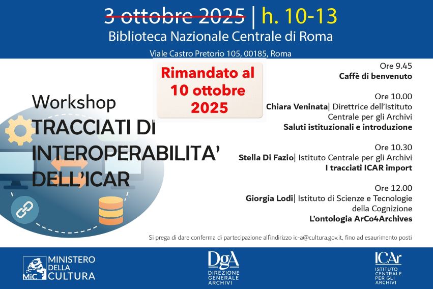 Il workshop “Tracciati di interoperabilità dell’ICAR”, inizialmente programmato per il 3 ottobre 2025, è stato posti…